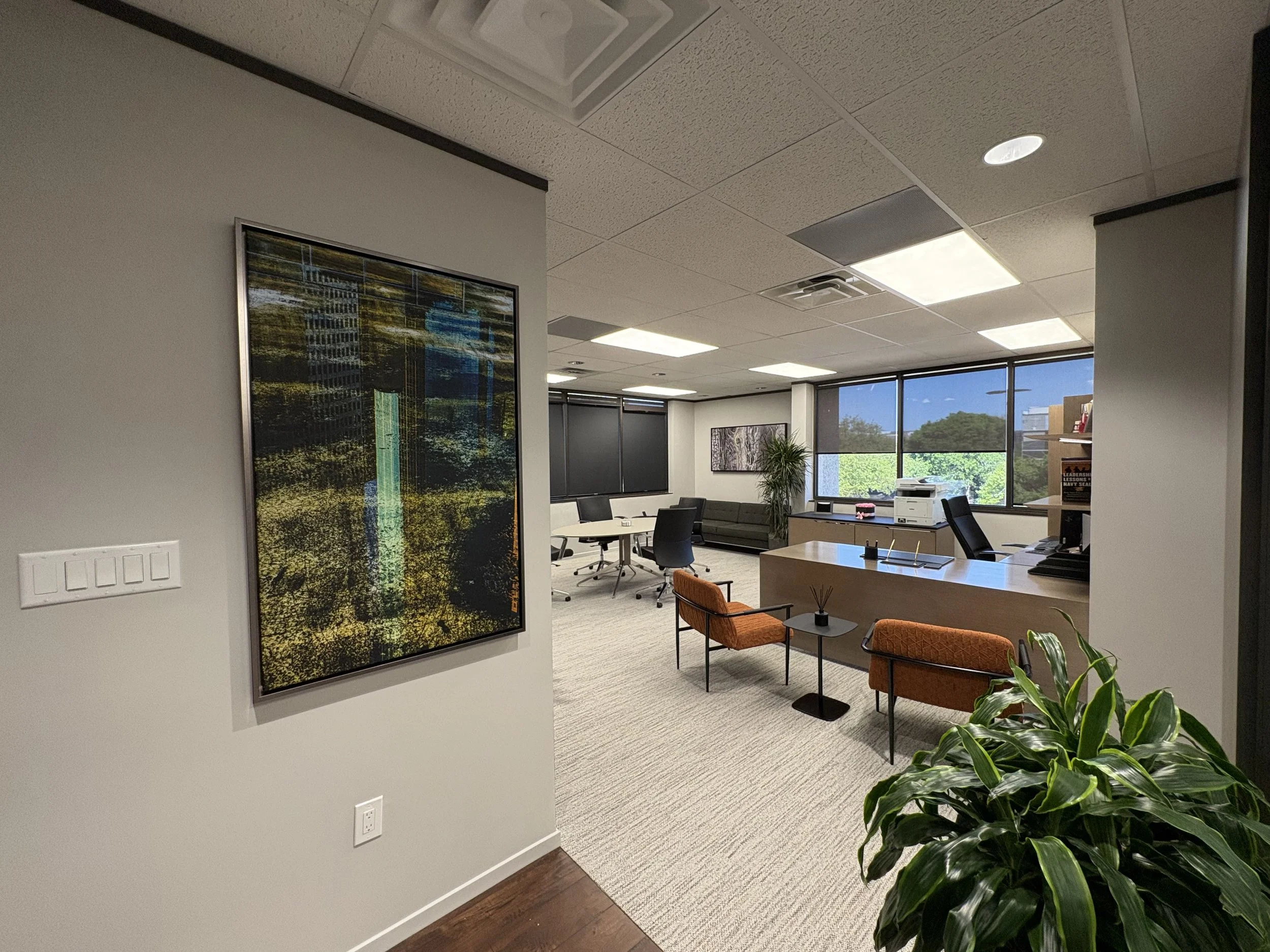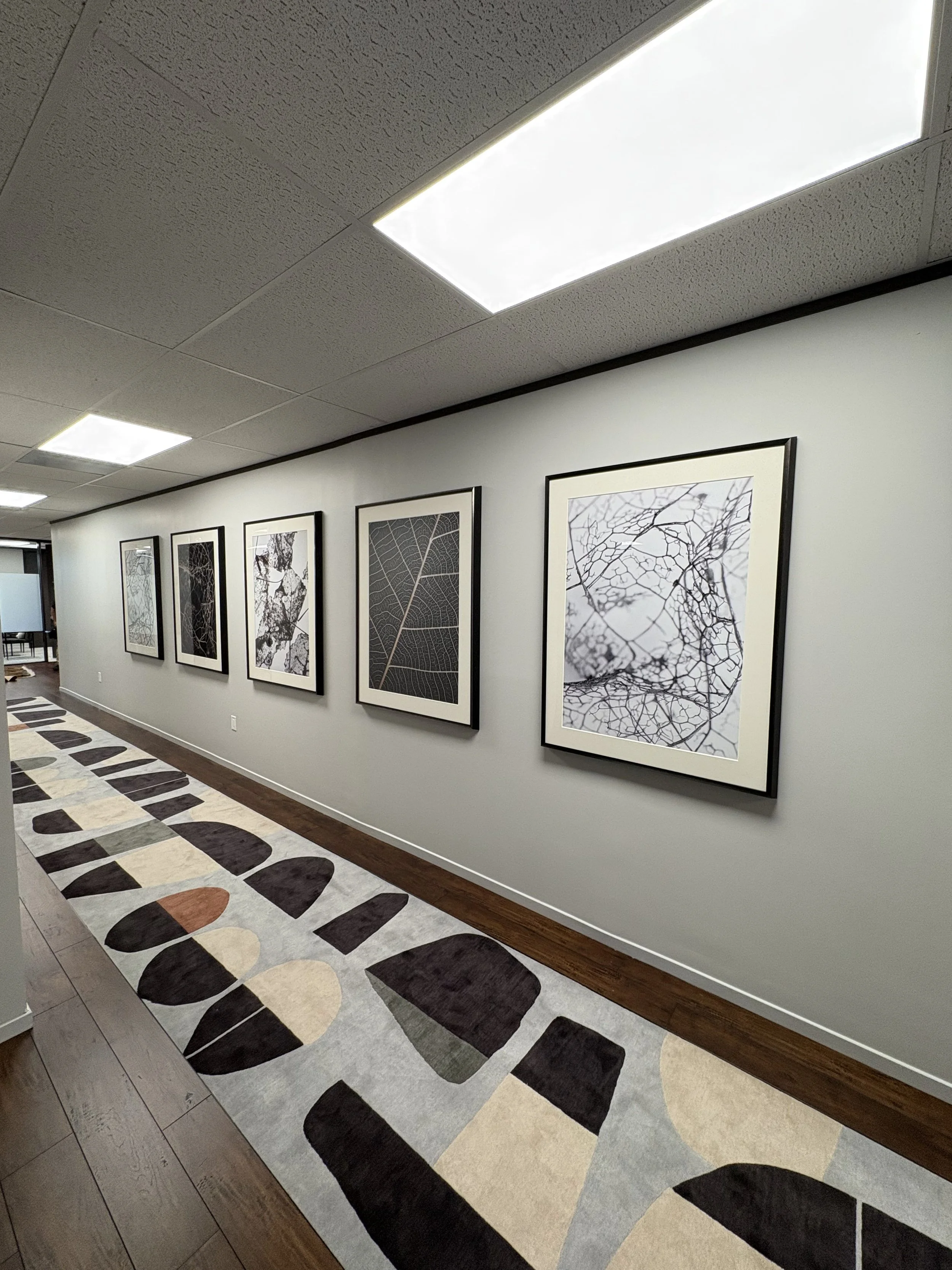 This corporate headquarters art program was created to bring warmth, authenticity, and a sense of place to a mission-driven healthcare organization. Drawing inspiration from Texas landscapes and regional architecture, the collection features a blend of natural themes, locally inspired imagery, and handcrafted wooden pieces that add depth and texture throughout the space.